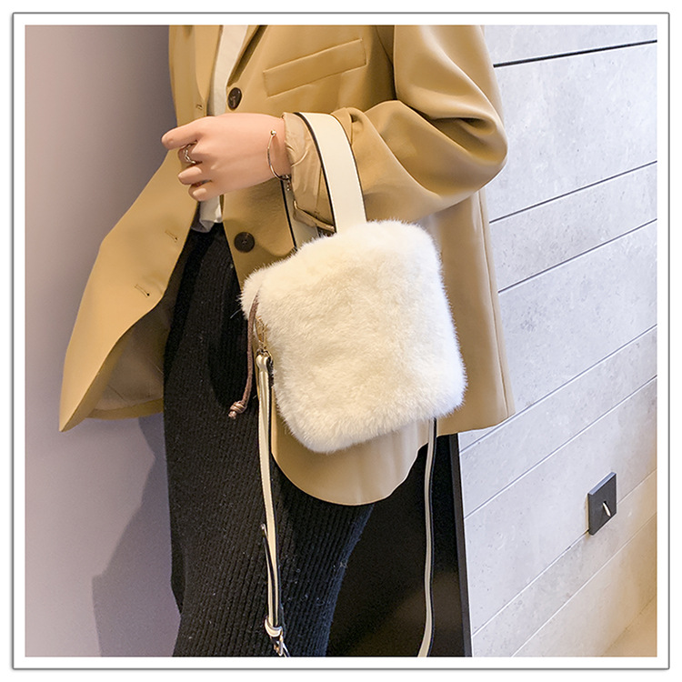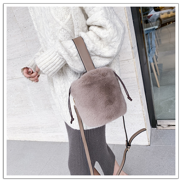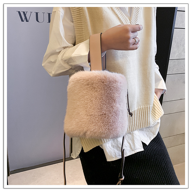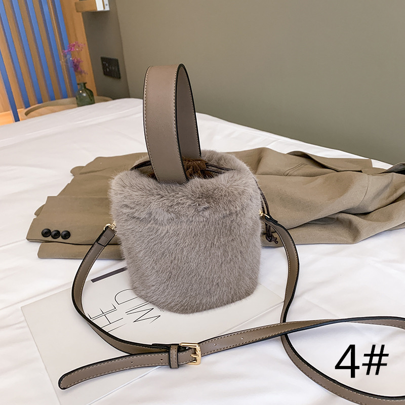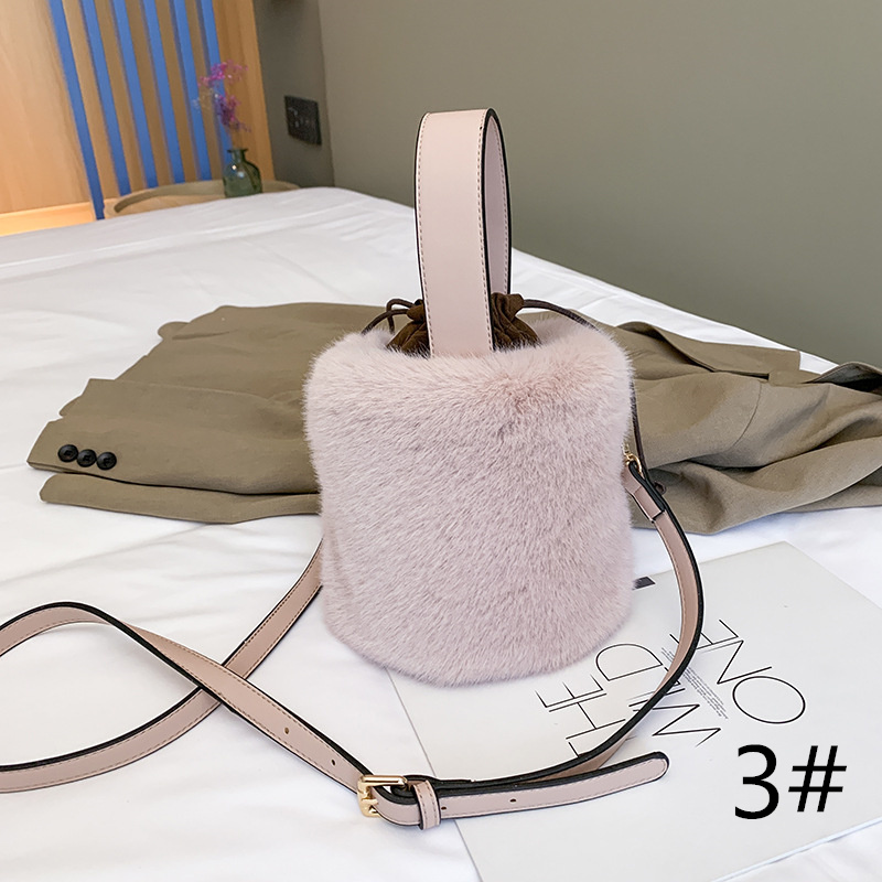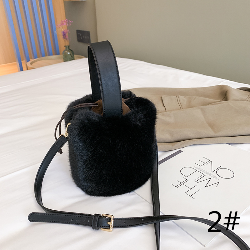 ふわふわの毛皮が魅力の2種類持ちバケツ型ショルダーバッグ♪