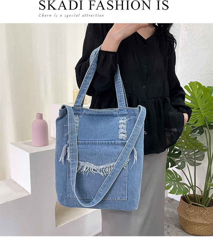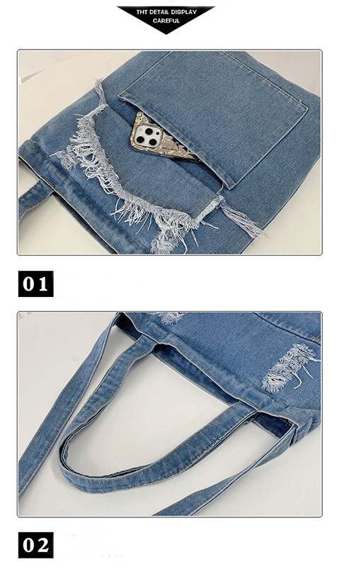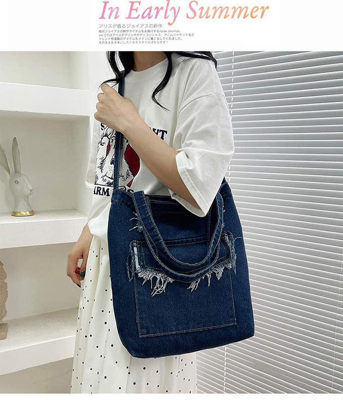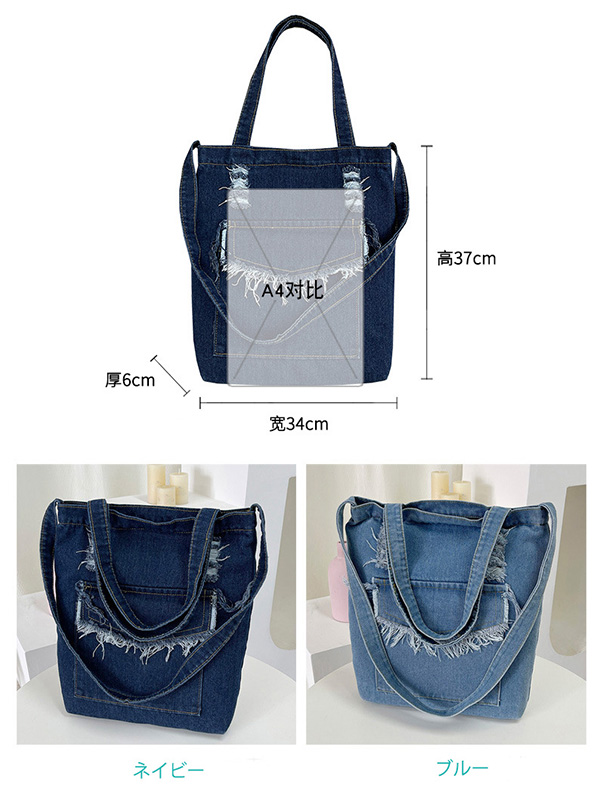 ・カジュアルで使いやすい、学生向けの2WAYデニムバッグです。 ・ショルダーとしても、手提げとしても使える実用性の高いデザインで、 中学生・高校生・大学生まで幅広い年代の学生におすすめです。 ・大容量収納ができるトートバッグ。 ・収納力抜群!ポケットたくさんあって便利。 ・シンプルで飽きのこないスタイル、男女問わず使用可能. ・シンプルデザインなので、カジュアルでもきれいめでも合わせやすく、毎日でも使いたくなる愛されバッグです。 ■サイズ(約cm) 幅:約34cm / 高さ:約37cm / マチ:約6cm ■素材 デニム ■裏地 なし ■内ポケット あり