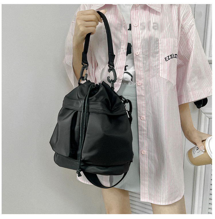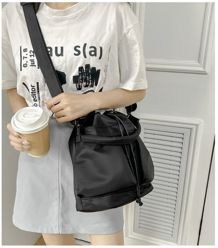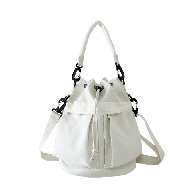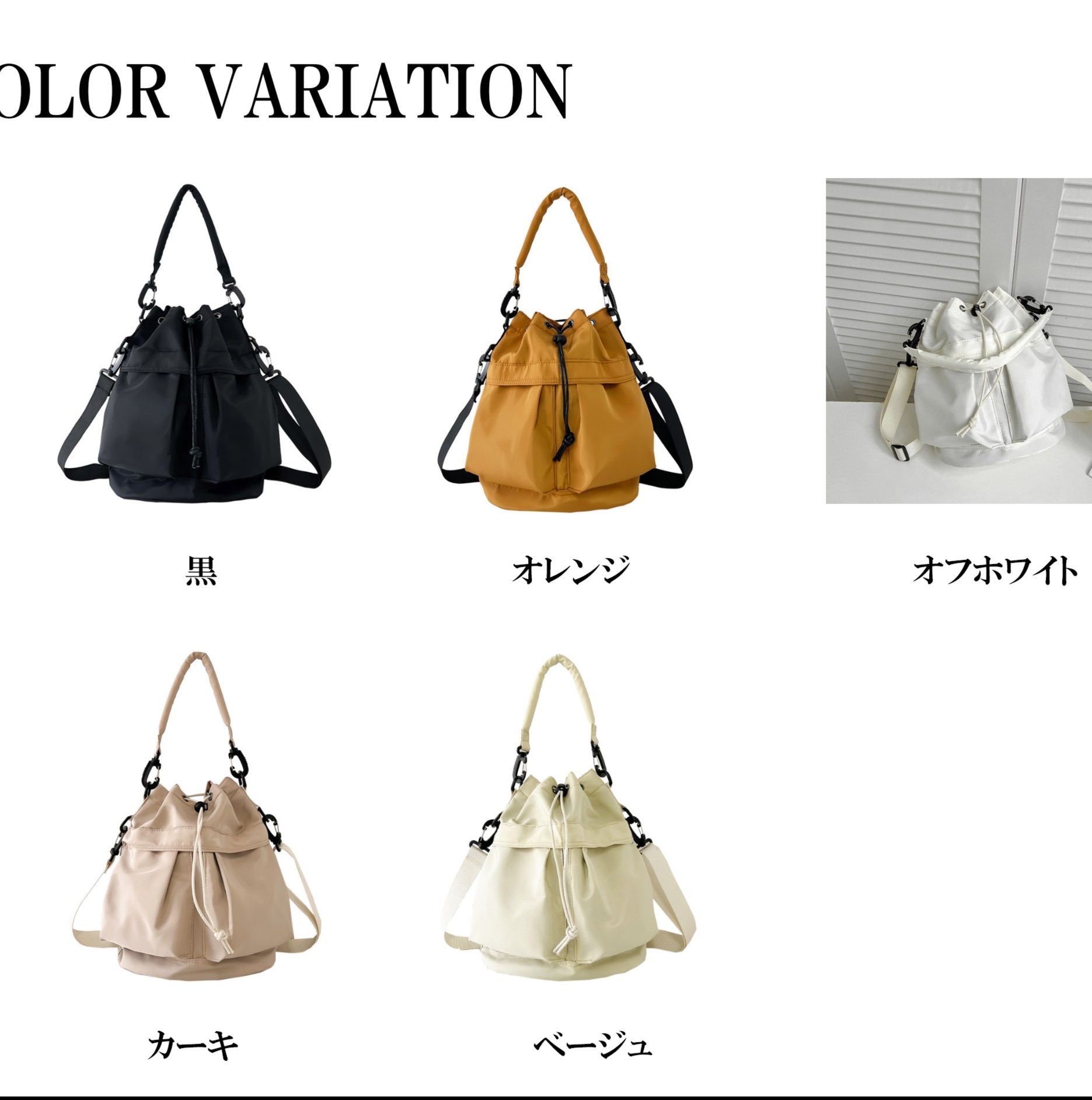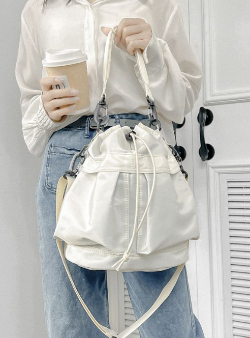 ・カジュアル過ぎずコロンとした可愛らしいフォルムが大人な印象的。 ・丸いフォルムがかわいいバケツ型バッグ。 ・シワになりにくい手入れしやすい軽量なポリエステル生地を使用。 ・スポーツMIXが今っぽいツヤ感のある素材感を活かしたデザイン。 ・バッグの側面に取り出しやすい便利なサイドポケット付き。 ・必要な物がしっかり収納できるコンパクトなサイズ感。 ・肩掛け、斜め掛けの2wayでお使いいただけます。 ■サイズ(約cm) 幅30×高さ28×マチ14、重量:240g ■素材 ポリエステル生地 ■裏地 あり ■ポケット あり