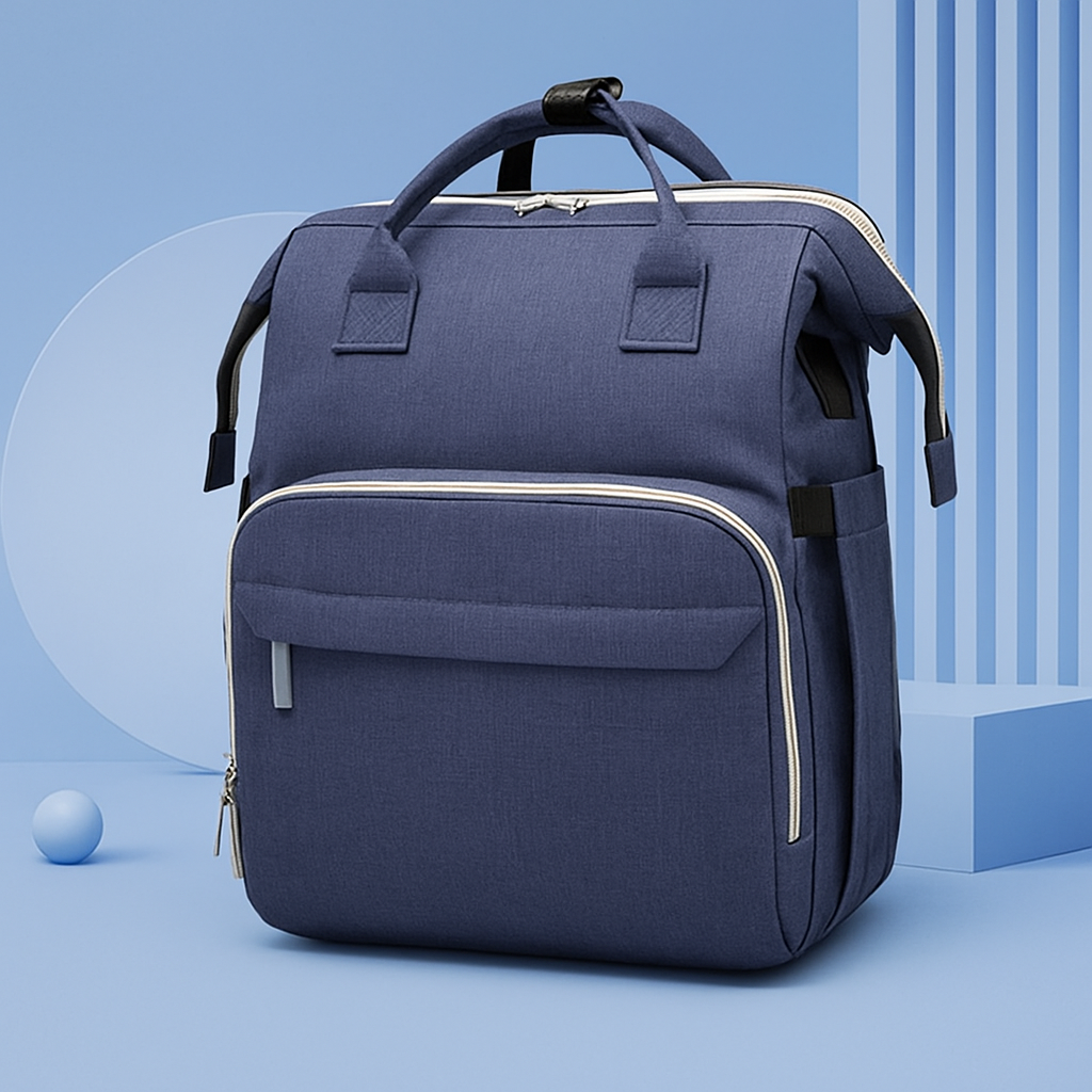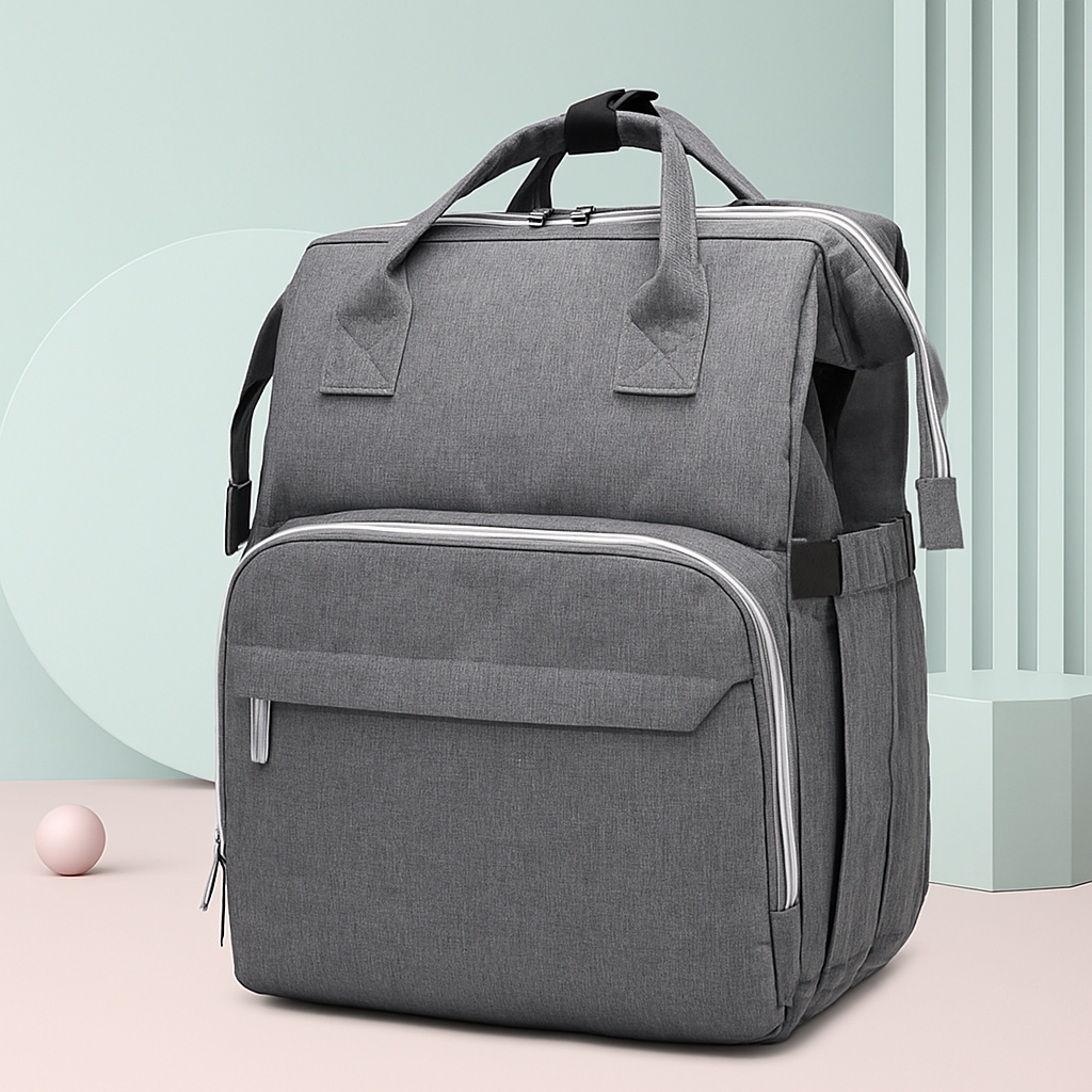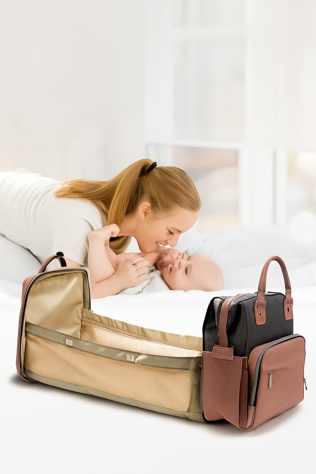 赤ちゃんのお世話に便利な簡易ベッド機能付きの2wayバッグです。