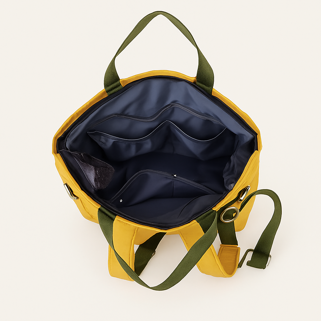 手提げとリュックの2wayバッグで使い分けができる便利なマザーズバッグです。 哺乳瓶やおむつ、着替えなどたっぷり収納できる大容量設計で、お出かけに必要なベビー用品をすっきり整理できます。 前面と内側に複数のポケットを配置し、小物の出し入れもスムーズです。 軽量で丈夫な素材を使用しており、長時間の外出でも肩への負担を軽減します。 ベビーカーにも取り付け可能で、育児中のママに最適な機能的なバッグです。